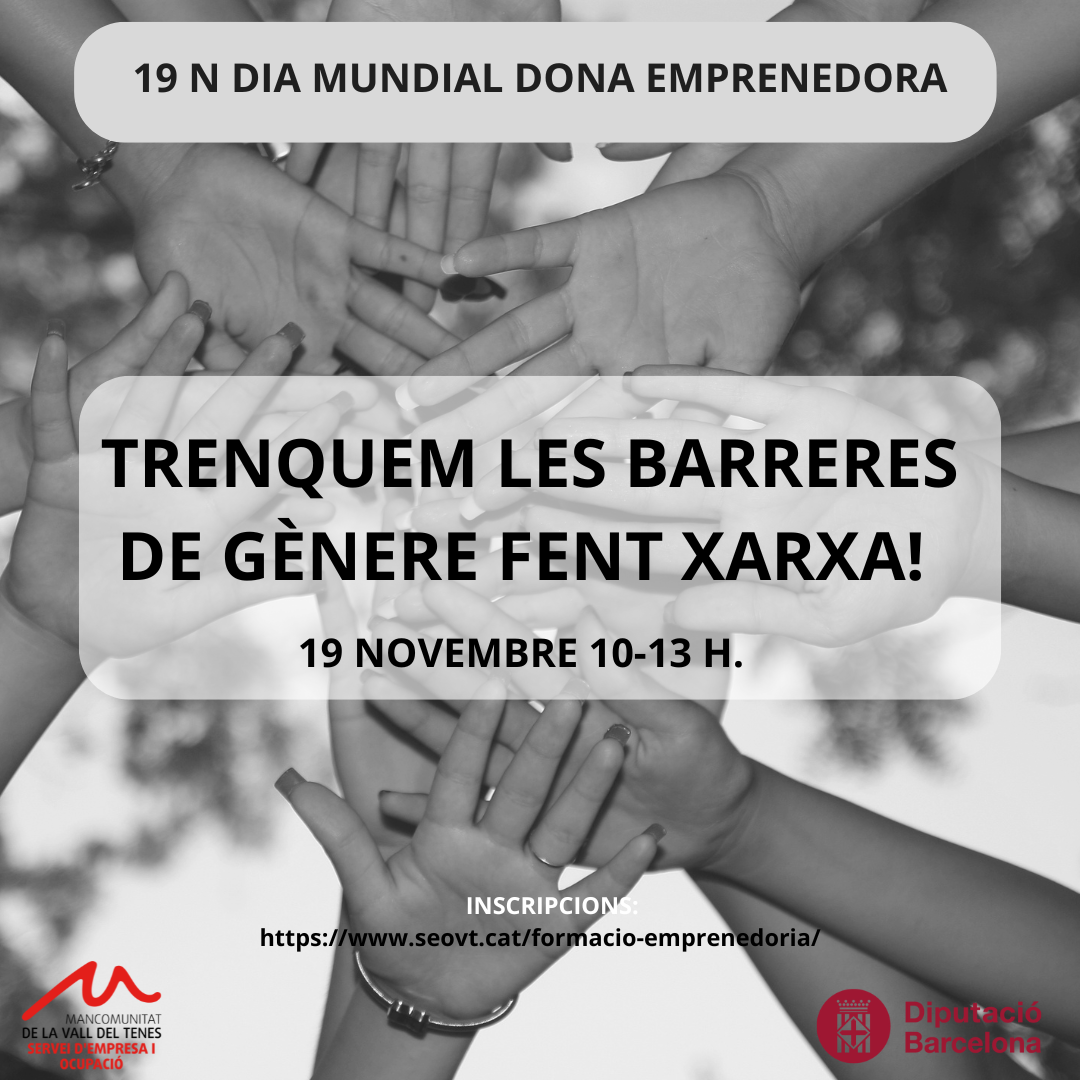 Amb motiu del Dia Mundial de la Dona Emprenedora, el 17 de novembre, de 9:30 a 13:30 h, el SEOVT organitza la IV Jornada Anual de la Dona Emprenedora, amb l’objectiu de trencar la bretxa de gènere i fomentar l’emprenedoria de la dona al promoure el suport mutu i el desenvolupament empresarial.