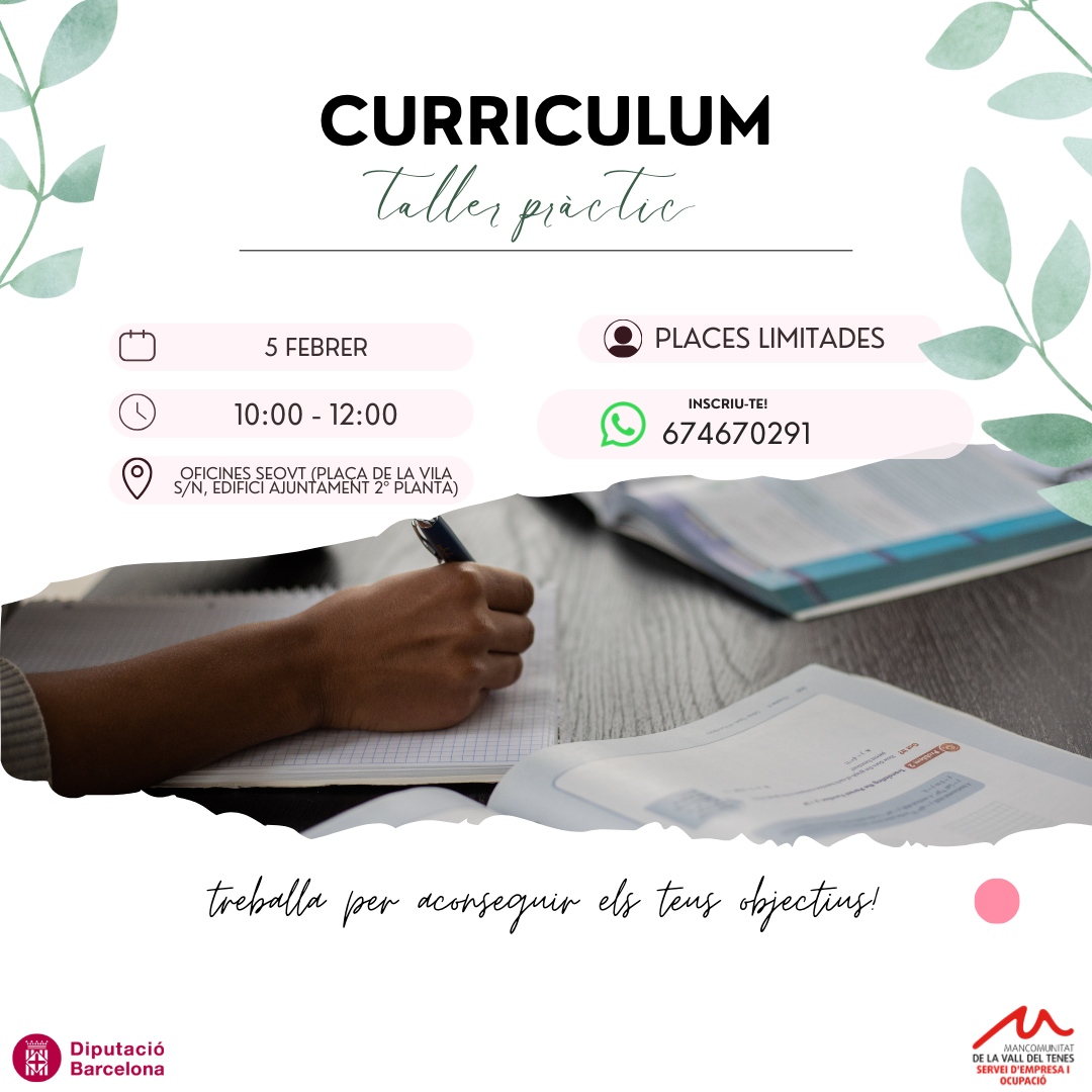 Vols renovar el teu currículum o no saps per on començar? Et convidem a un taller pràctic on aprendràs a destacar les teves competències, adaptar el teu CV a l’oferta i captar l’atenció de les empreses.